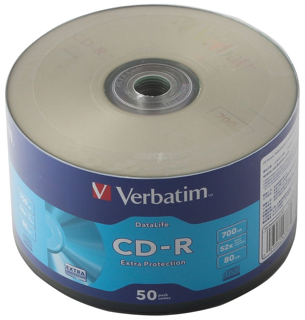 CD-R Носители информации CD-R, 52x, Verbatim Extra Protection, Cake/50, 43351