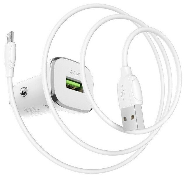 Автомобильное зарядное устройство BOROFONE BZ12A Lasting power, 18W + кабель microUSB, белый