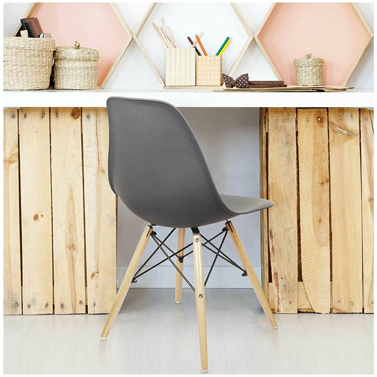 Стулья для кухни комплект 4 шт. Brabix Eames Cf-010 со спинкой мебель для гостинной / офиса / дома пластиковые серые, ножки дерево/металл, 532632