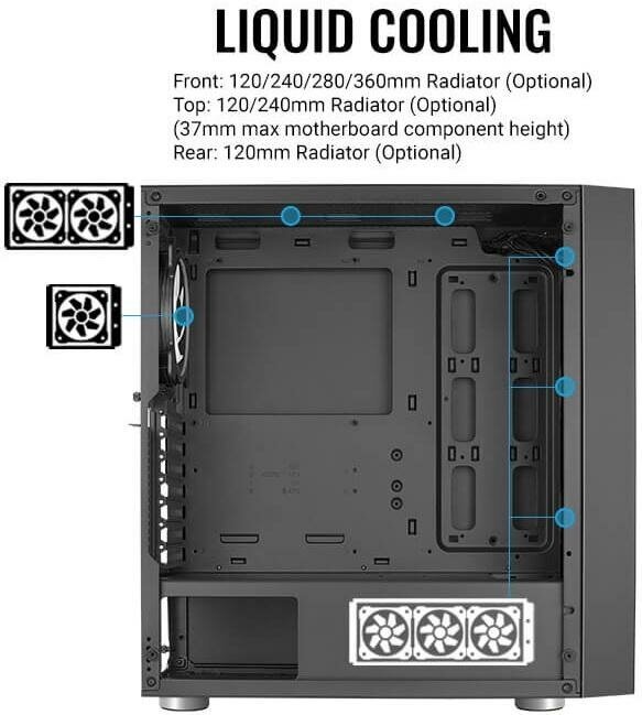 | Мест для вентиляторов спереди | 2x140мм (3x120мм) |