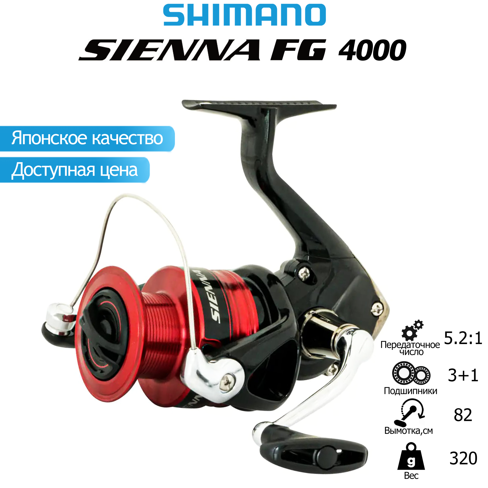 Лучшие цены. Shimano Sienna 4000 FG – качественная катушка по доступной цене. Данная модель подходит для всех видов пресноводной рыбалки и является самой доступной из катушек Shimano. Шимано Сиенна имеет лёгкий и прочный корпус из композитного материала XT-7, а за плавность хода отвечают три шариковых и один роликовый подшипники. Идеальный баланс за счёт смещения центра тяжести обеспечивает технология корпуса Shimano G-Free. Магазины в вашем городе.