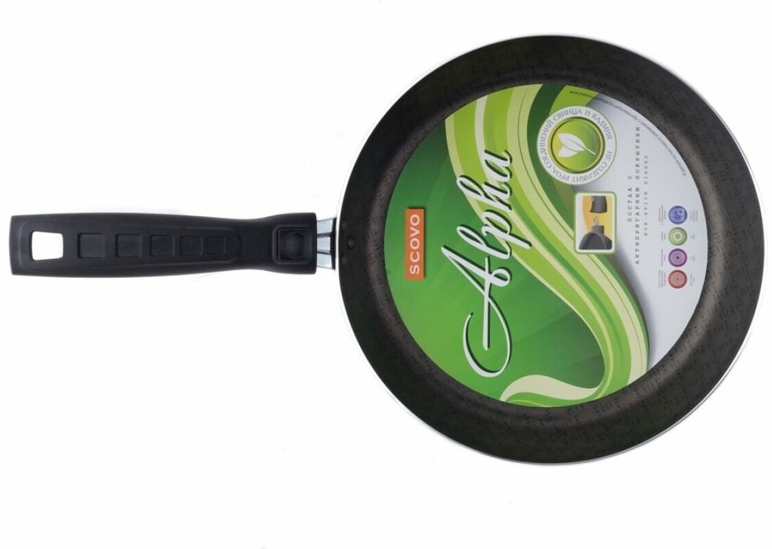 Лучшие цены. Alpha – воплощение рациональности и экономичности. Благодаря оптимальной толщине алюминия и съемным ручкам, позволяет разумно подойти к организации пространства в кухонных шкафах, а также дает возможность использовать ее в духовке. Внутреннее покрытие Skandia®Whitford, полностью соответствует стандарту качества изделий под торговой маркой Scovo, обеспечивая высокие антипригарные свойства посуды, не содержит PFOA. Магазины в вашем городе.