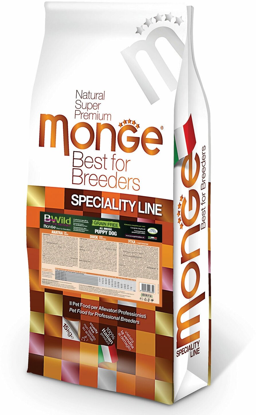 Корм для собак Monge Dog BWild Grain Free Сухой беззерновой корм для щенков всех пород, мясо Утки и Картофель 15кг