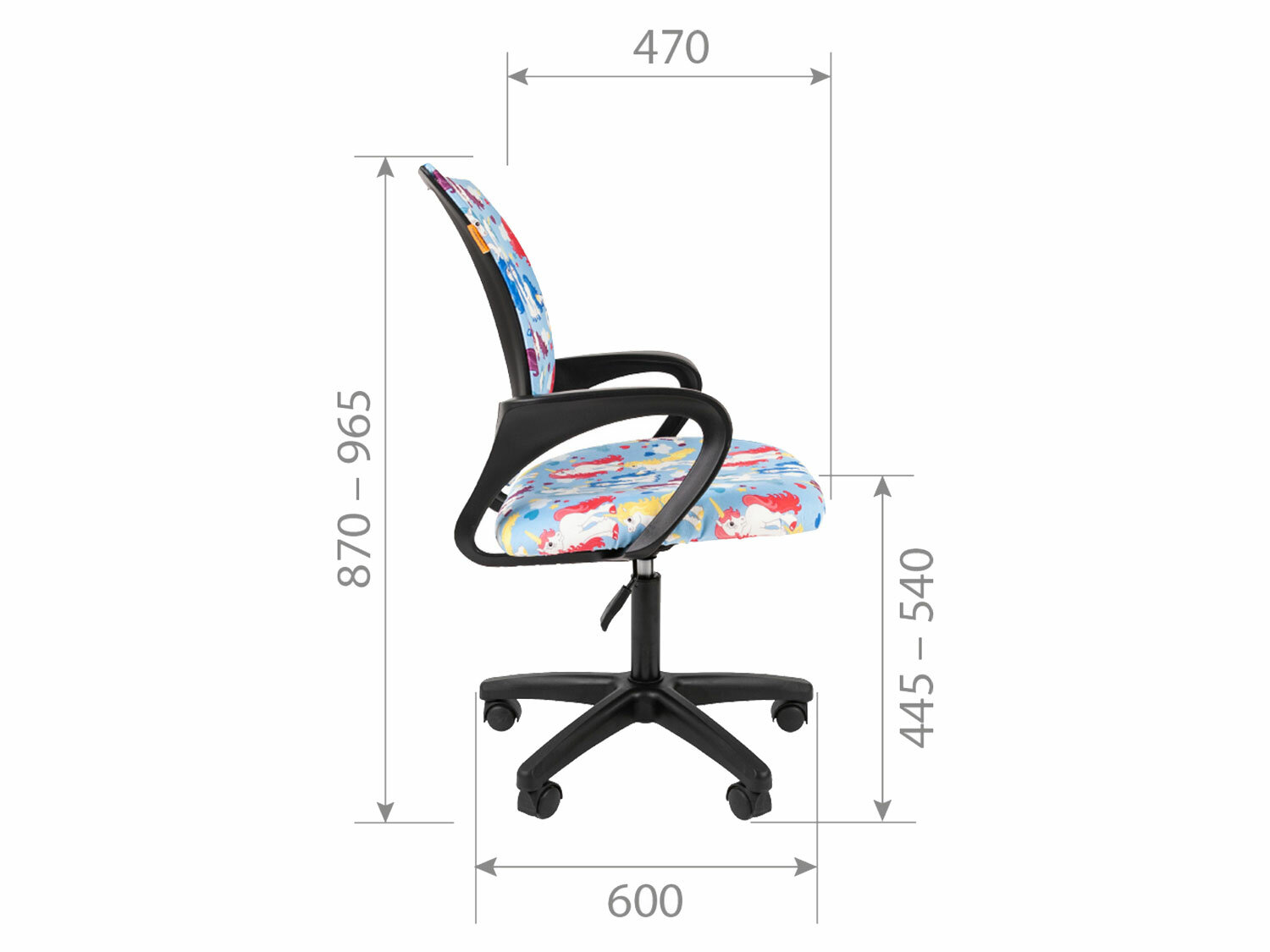 Кресло детское CHAIRMAN KIDS 103 BLACK черный пластик Ткань велюр с рисунком единорог