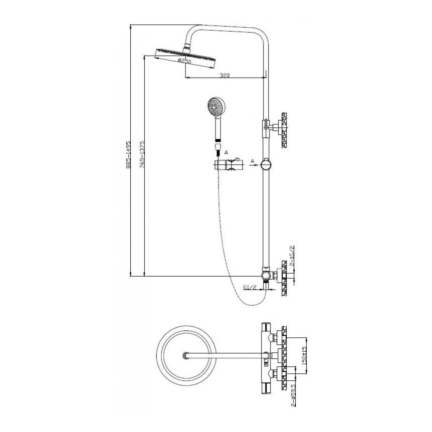 | Комплектация | ручной душ (душевая лейка) / верхний душ (тропический) / смеситель / стойка / штанга / душевой шланг / крепление ручного душа |