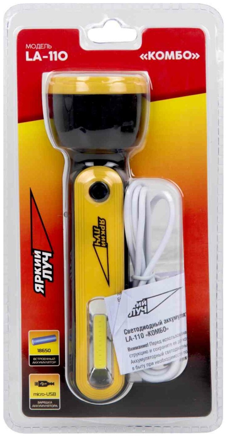 Фонарь Яркий Луч LA-110 комбо аккумуляторный, Li-Ion 1500mAh, встроенное зарядное устройство 880 ₽ Подробнее