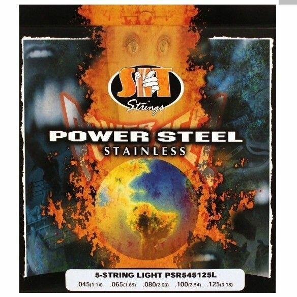 Струны Струны для бас гитары SIT PSR545125L POWER STEEL(45-65-80-100-125) 5 струн, легкого натяжения.