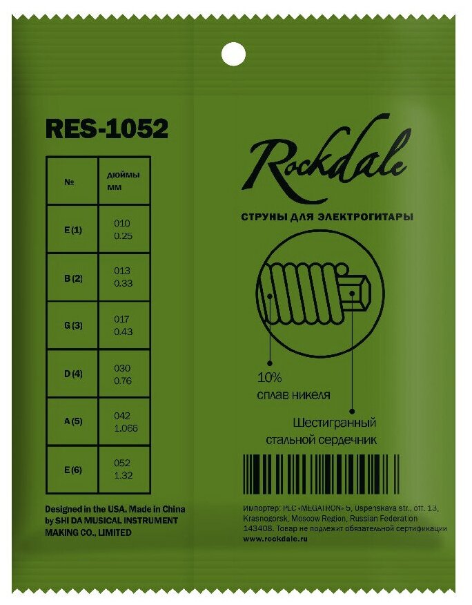 Струны Струны для электрогитары ROCKDALE RES-1052 (калибр 10-52)