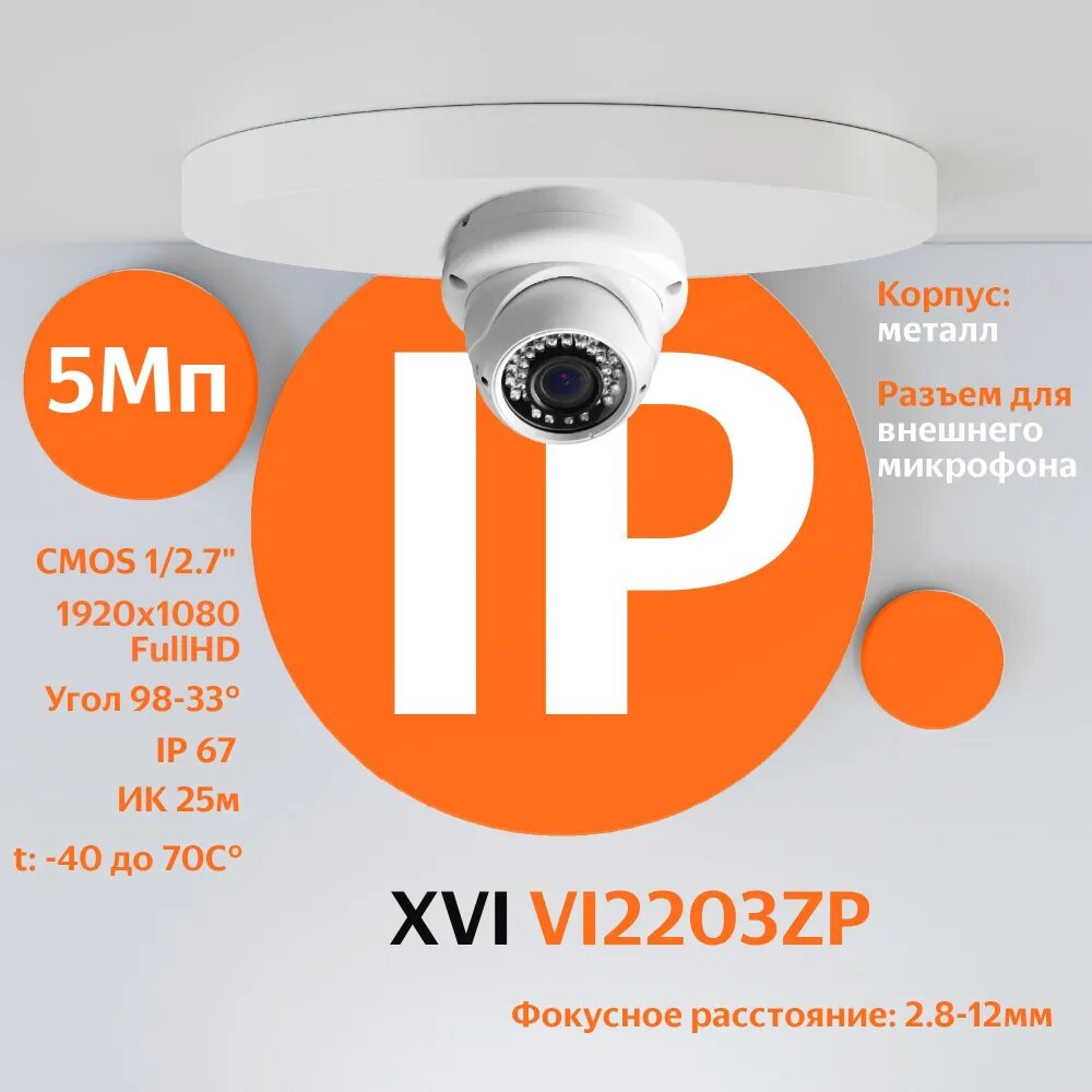 Камеры видеонаблюдения IP камера видеонаблюдения XVI VI2203ZP (2.8-12мм), 2Мп, PoE, ИК подсветка, антивандальная