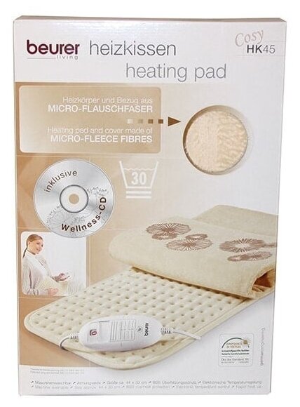 Лучшие цены. Beurer HK45 Cosy - это оригинальная электрогрелка с чехлом из мягкого воздухопроницаемого микроволокна. Для создания грелки использована дышащая, приятная для тела ткань, а 3 температурных режима позволяют выставить максимально комфортную температуру для вашего тела. Грелка осуществляет быстрый нагрев и имеет встроенную систему защиты от перегрева. Надежная и функциональная У Beurer HK45 Cosy предусмотрено автоматическое отключение - это происходит примерно через 90 минут. Магазины в вашем городе.
