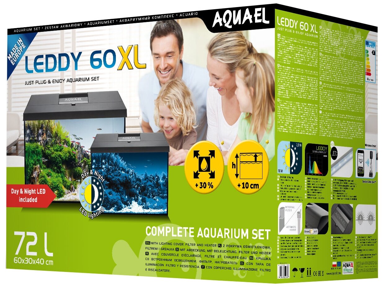 Аквариум AQUAEL Аквариум LEDDY XL 60 D/N 2.0 черный / 72л прямой, 60х30х40см. Комплектация: крышка, свет Leddy Tube 10Вт Day&Night 2.0, фильтр ASAP 300, нагреватель FIX2 100W. (Польша)