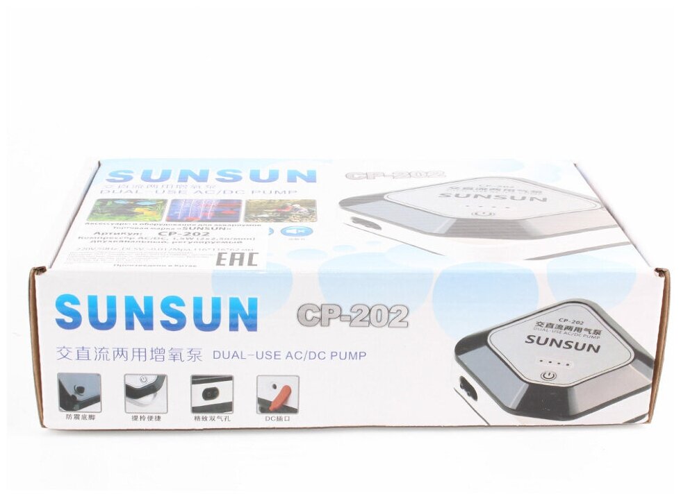 Аквариумные компрессоры и помпы Компрессор с аккумулятором SunSun CP-202 для аквариумов (300 ч/л, 1,5 Вт.)