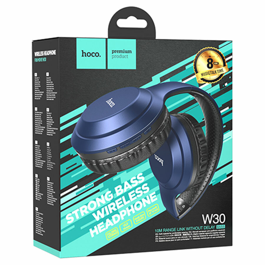 Наушники полноразмерные беспроводные Hoco W30 (Bluetooth) синий