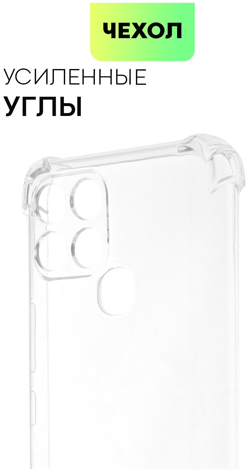 Чехлы для мобильных телефонов Противоударный чехол BROSCORP для Infinix Smart 6, Smart 6 HD (Инфиникс Смарт 6, Смарт 6 HD). Усиленные углы, защита камер, прозрачный