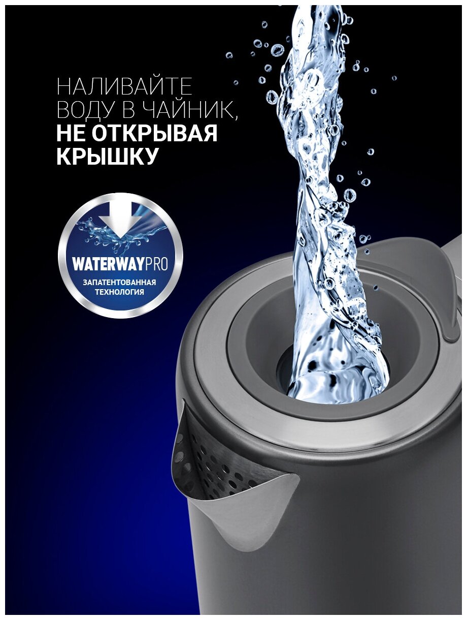 Лучшие цены. Новая запатентованная технология залива воды WATERWAY PRO для удобного верхнего залива воды в чайник без открытия крышки. Безупречно спроектированная съемная крышка для максимально удобной очистки чайника. Английский контроллер Strix обеспечивает 15 000 циклов кипячения, что равно 10 годам интенсивного использования. Дно чайника из стали нового поколения Promedic. Сталь устойчива к термодеформации, легка в очистке. Корпус из высококачественной нержавеющей стали. Шкала контроля уровня воды. Магазины в вашем городе.