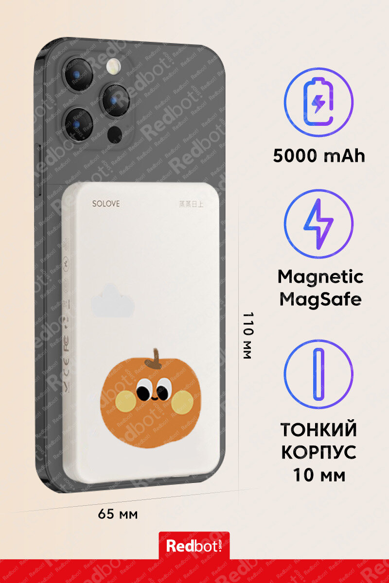 Powerbank Внешний аккумулятор Power Bank SOLOVE 5000mAh Magnetic MagSafe 20W QC 3.0 PD 3A Lightning input *1 + Type-C input/output dual side *1 (W9 Beige Apple) c рисунком яблок