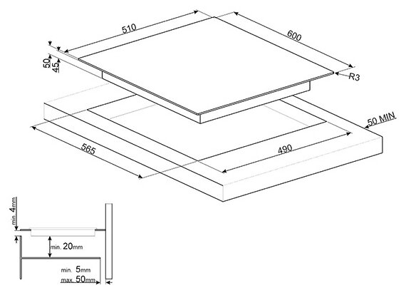 | Размеры для встраивания (ШхГ) | 565x490 мм |
