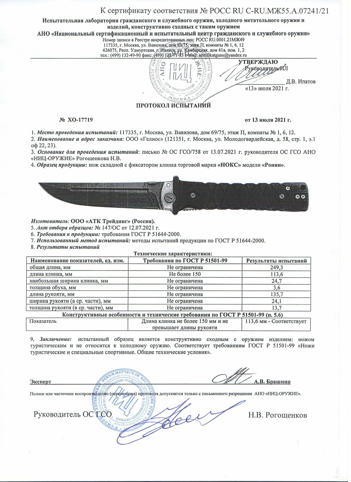 Ножи и мультитулы Складной нож нокс Ронин, сталь D2, 344-709407