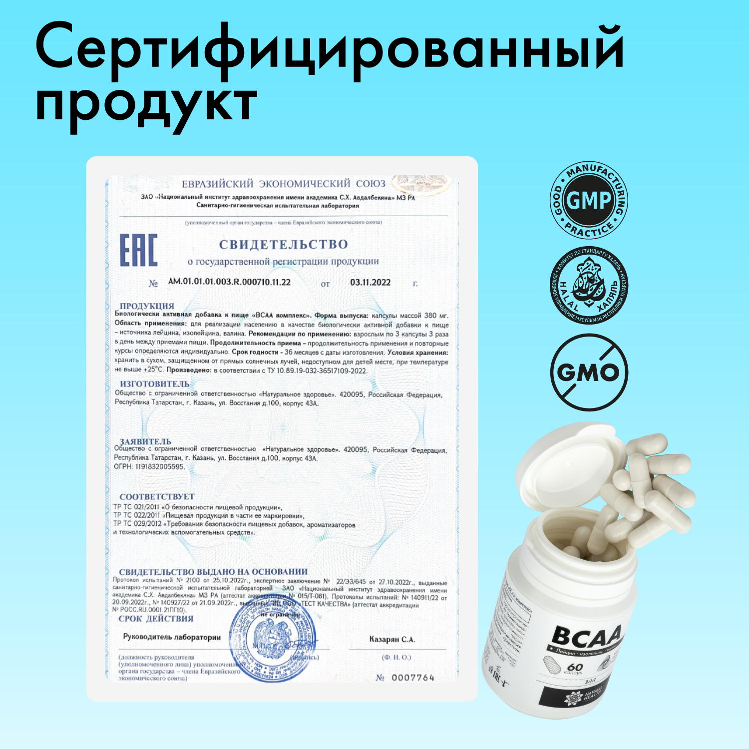 BCAA в капсулах 2:1:1, спортивное питание для набора мышечной массы, Natural Health, Натуральное Здоровье
