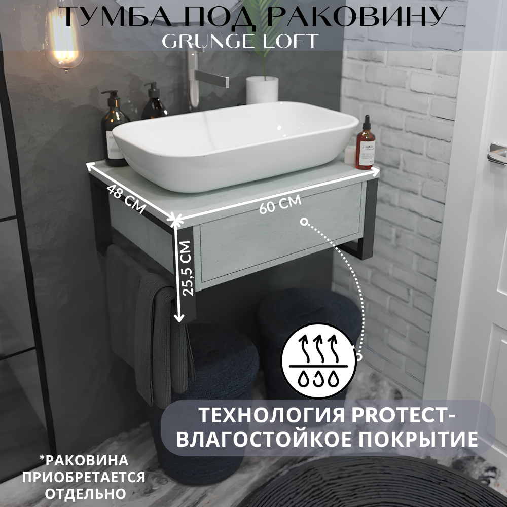 Тумбы под умывальник Тумба под раковину в ванную 1Marka GRUNGE LOFT 60 см Подвесная цвет Бетон светлый Ц0000001582