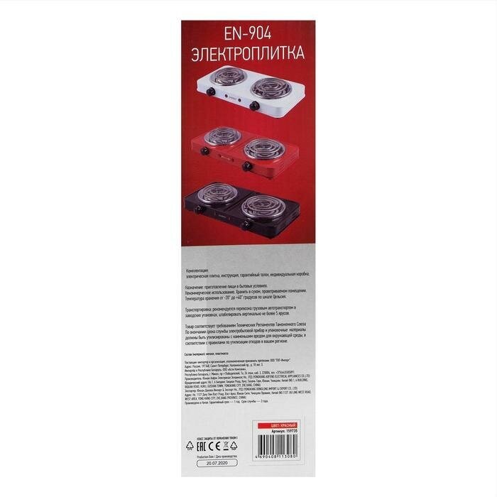 Плитка электрическая ENERGY EN-904R, 2000 Вт, 2 конфорки, красная Energy 4325206 .