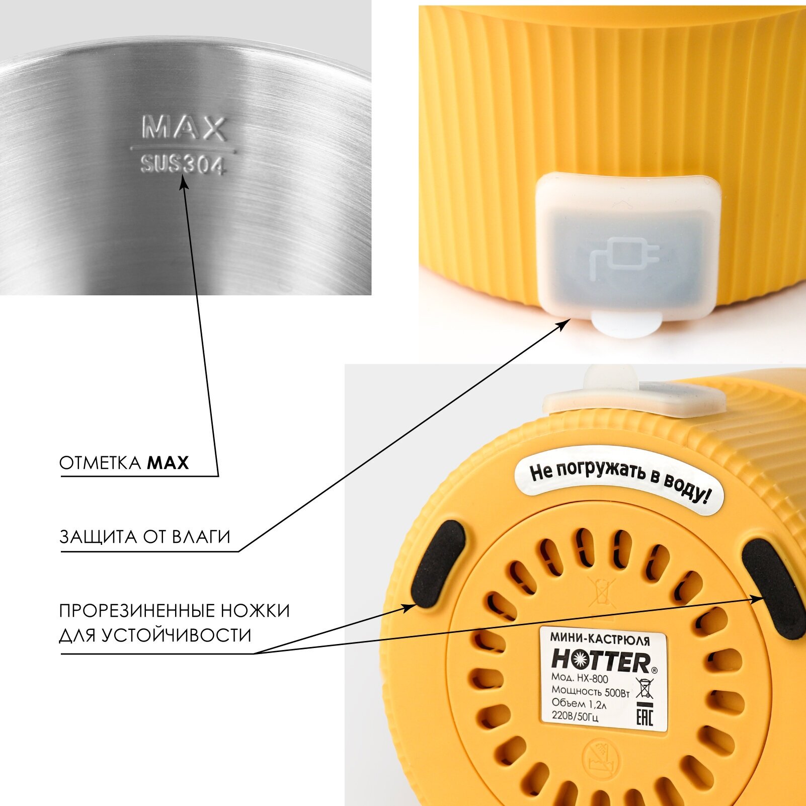 Кастрюли Электрическая мини-кастрюля HOTTER с чашей из нержавеющей стали, 1200 мл, 500Вт