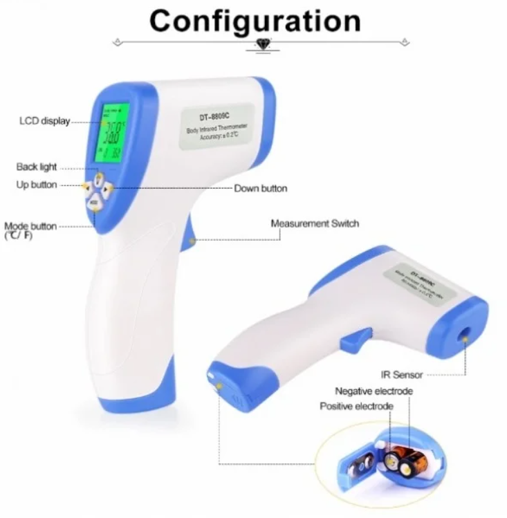Медицинские термометры Бесконтактный инфракрасный термометр пирометр IT-202 для измерения температуры детей и взрослых, Белый