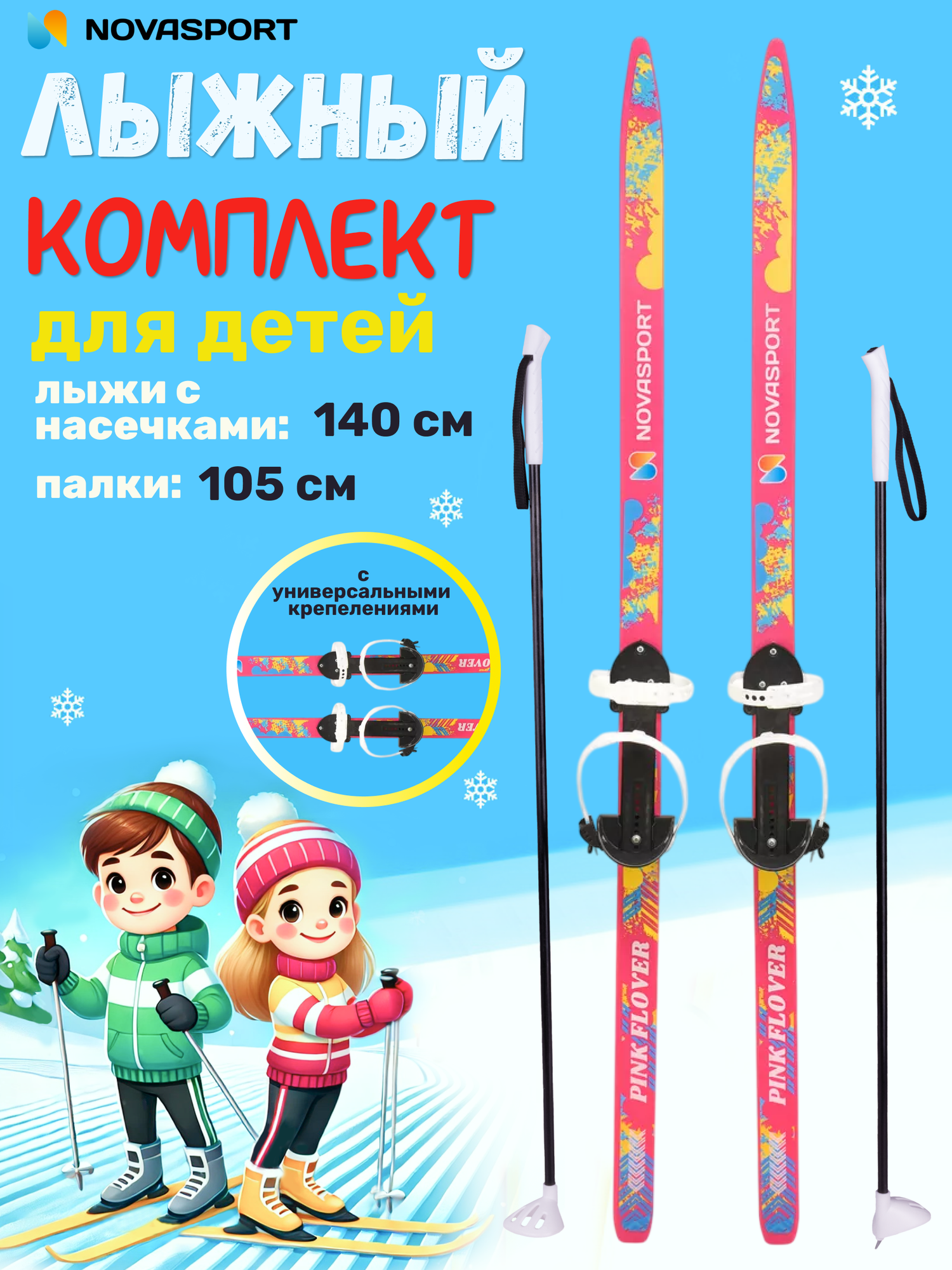 Лыжи Лыжи детские с палками с креплениями 140 см/105 см NovaSport Pink Flower комплект лыжный детский