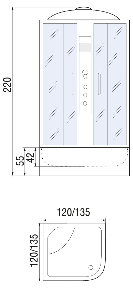 Душевая кабина River TEMZA 120/120/55 ТН, 120x120x220