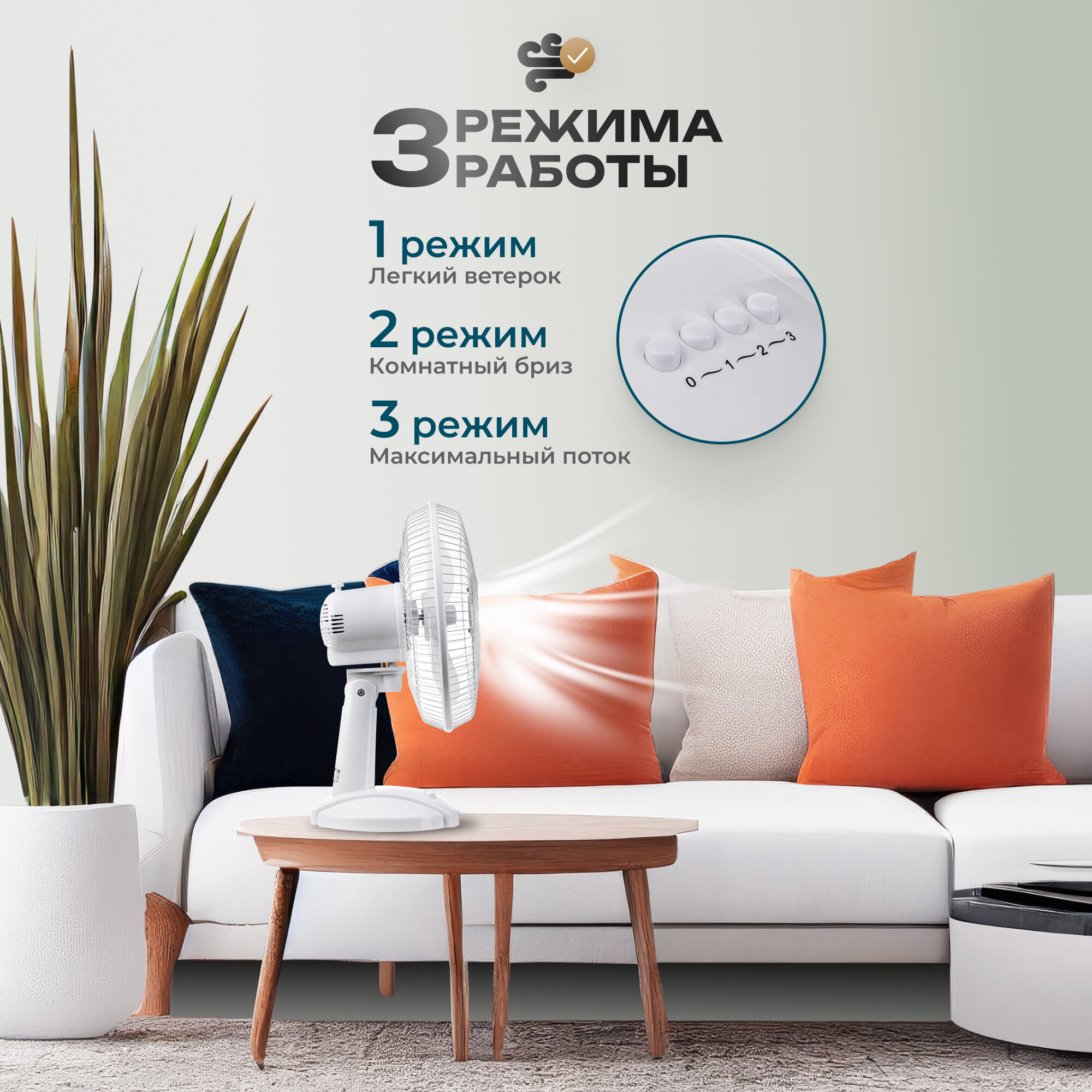 Лучшие цены. Настольный вентилятор **CENTEK CT-5007** - это идеальное решение для создания комфортного микроклимата в помещении. Этот компактный и стильный прибор оснащен тремя режимами работы, которые позволяют настроить оптимальную скорость воздушного потока для различных условий. Диаметр решетки составляет 34 сантиметра, что обеспечивает достаточную циркуляцию воздуха. Уровень шума от вентилятора составляет всего 41-49 децибел, что делает его работу практически бесшумной. Магазины в вашем городе.
