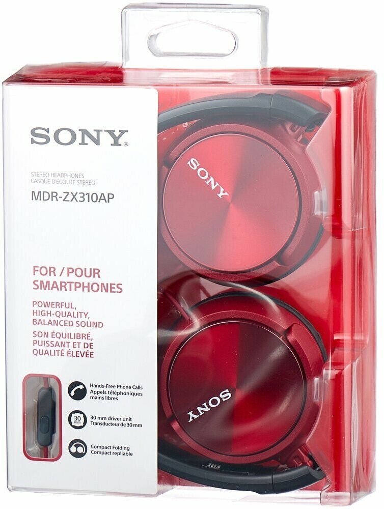 Наушники SONY MDR-ZX310AP/R проводные, накладные, 1,2м, красный
