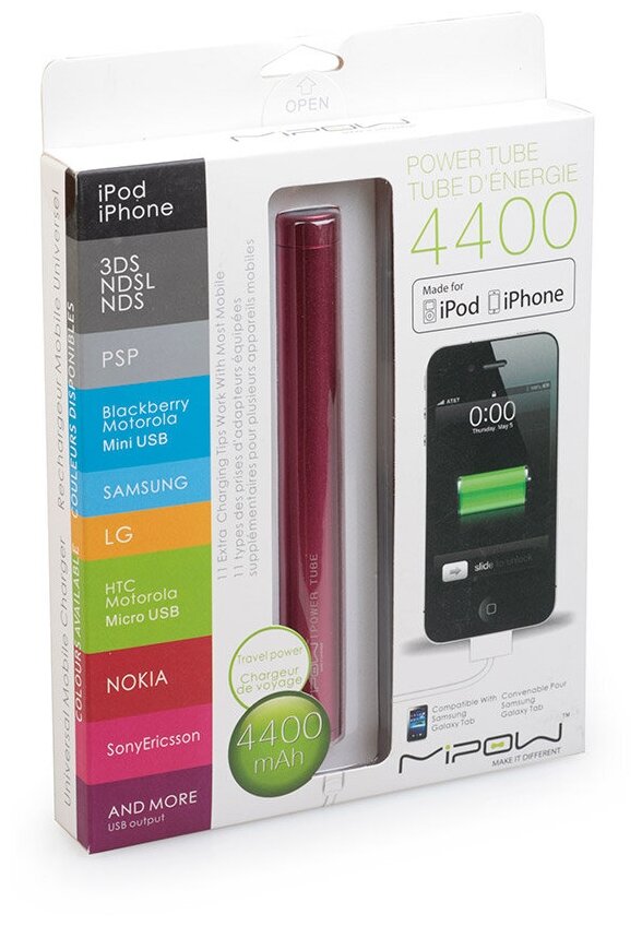 Лучшие цены. Mipow Power Tube SP4400 – современный взгляд на портативные аккумуляторы. Универсальное мобильное зарядное устройство для Apple, iPad, Samsung Galaxy TAB и других мобильных телефонов. Большая емкость батареи, индикатор состояния заряда, компактный размер, яркий и стильный дизайн, роскошный металлический корпус с долговечным логотипом, полученный путем лазерной гравировки. Магазины в вашем городе.