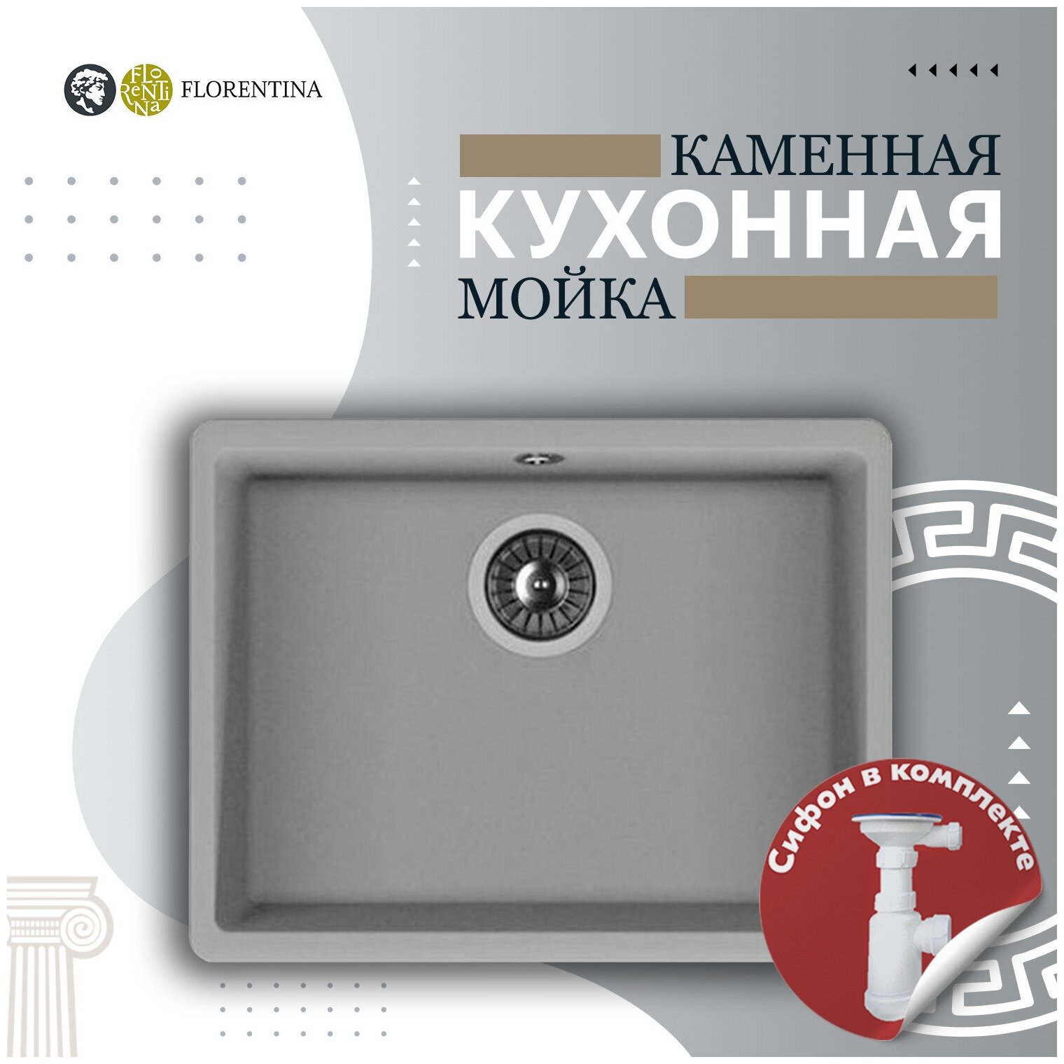 Кухонная мойка Florentina Вега 500 Серый шёлк Искусственный камень