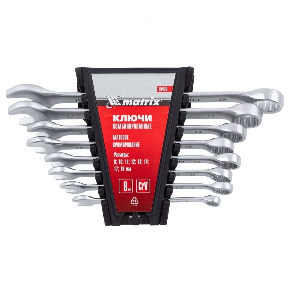 Набор ключей комбинированных, 8-19 мм, 8 шт, CrV, матовый хром Matrix 15406