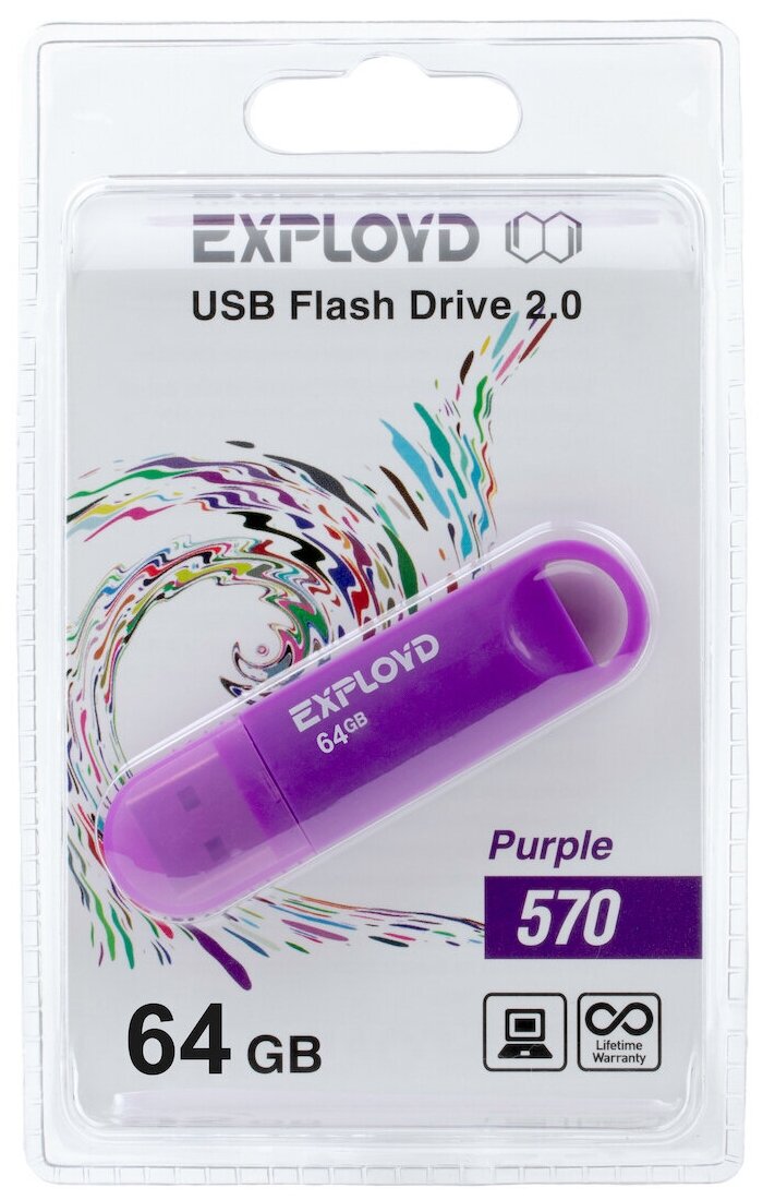 Флешка Exployd 570 64Gb (EX-64GB-570-Purple) USB 2.0 пурпурный