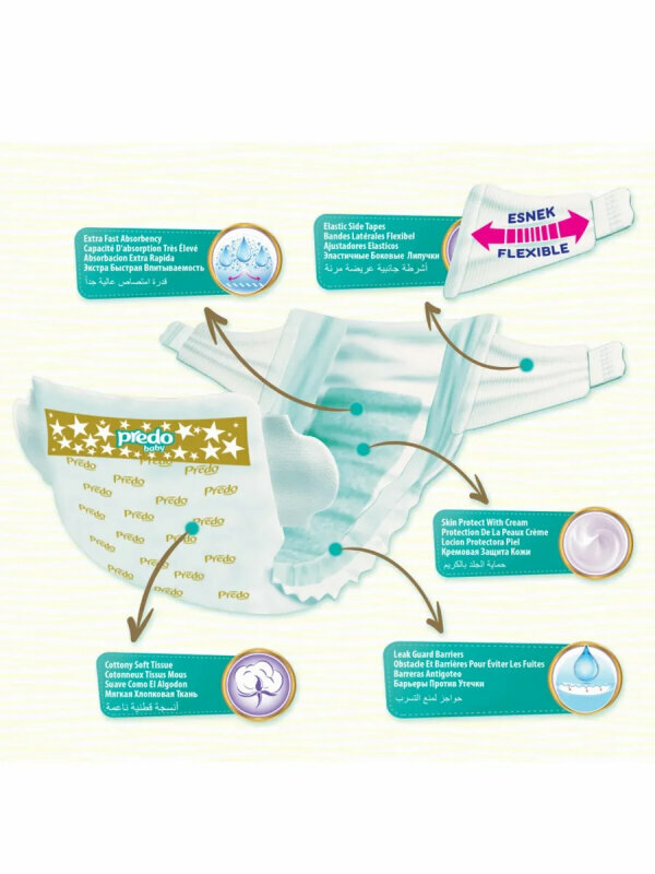 Подгузники для детей PREDO Baby 44шт №3 (4-9кг)