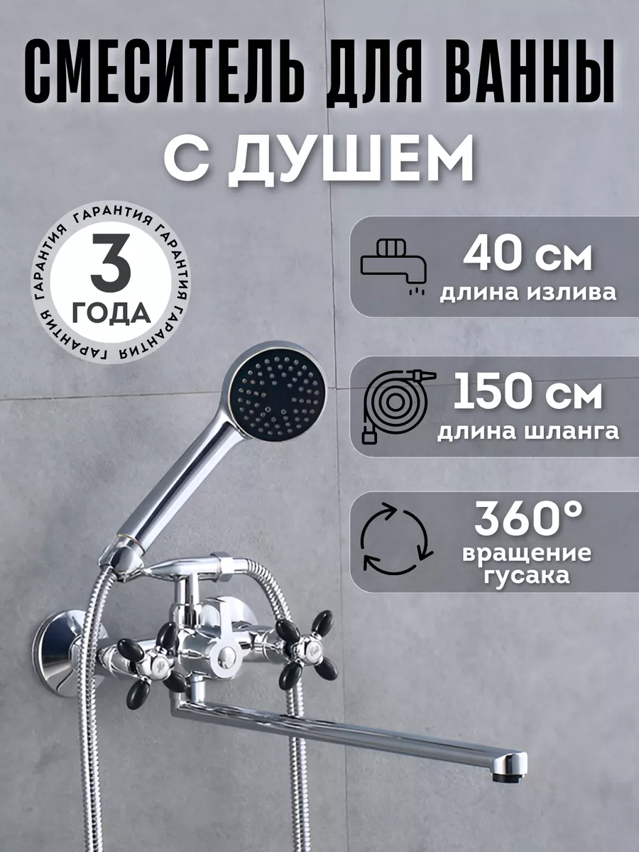 Смеситель для ванны с душем с длинным изливом, кран в ванну Potato