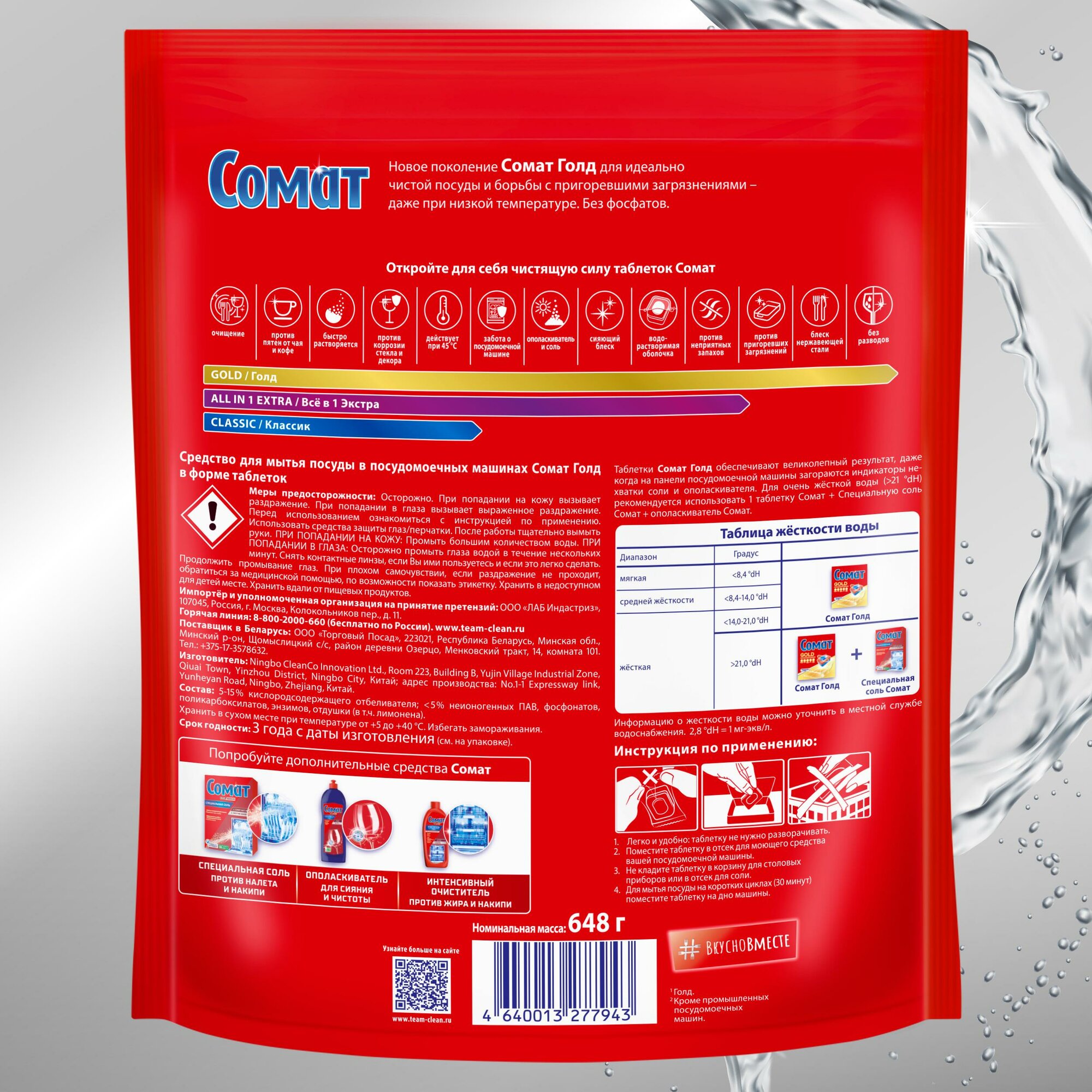 Сомат Gold таблетки для посудомоечной машины, 70 шт