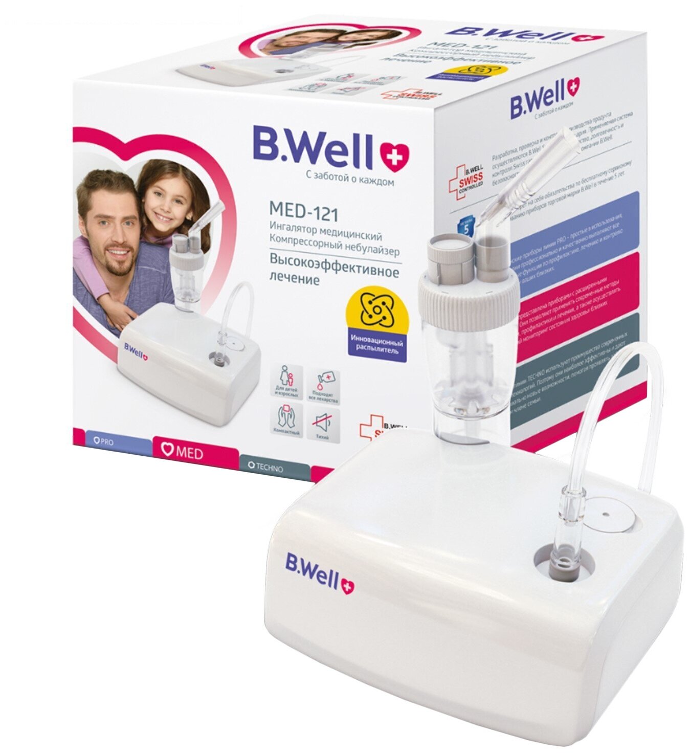 Лучшие цены. Компрессорный медицинский ингалятор (небулайзер) B.Well MED-121 - тихий и компактный прибор для высокоэффективной терапии дыхательной системы. Предназначен для лечения и профилактики астмы, хронической обструктивной болезни легких (ХОБЛ) и других респираторных заболеваний, где во время лечения требуется применение аэрозольных лекарств. Прибор может быть использован всеми членами семьи, независимо от возраста. Небулайзер B. Well MED-121 оснащен инновационным распылителем B. Магазины в вашем городе.