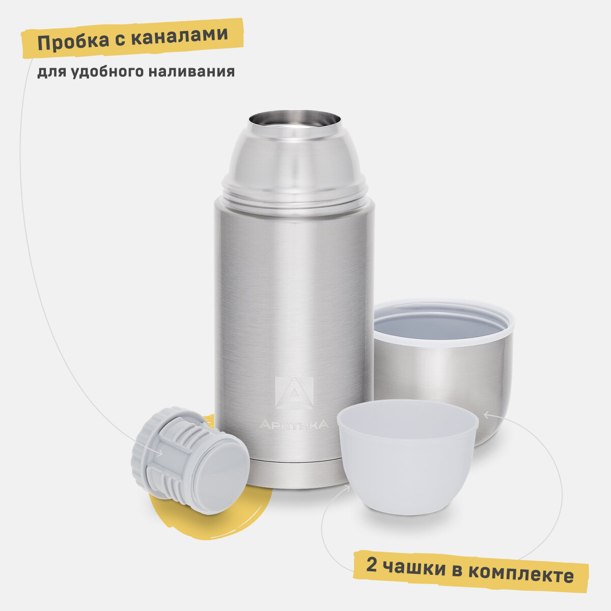 Термос 1 литр компактный Арктика 105-1000 с двумя чашками 1 992 ₽ Подробнее