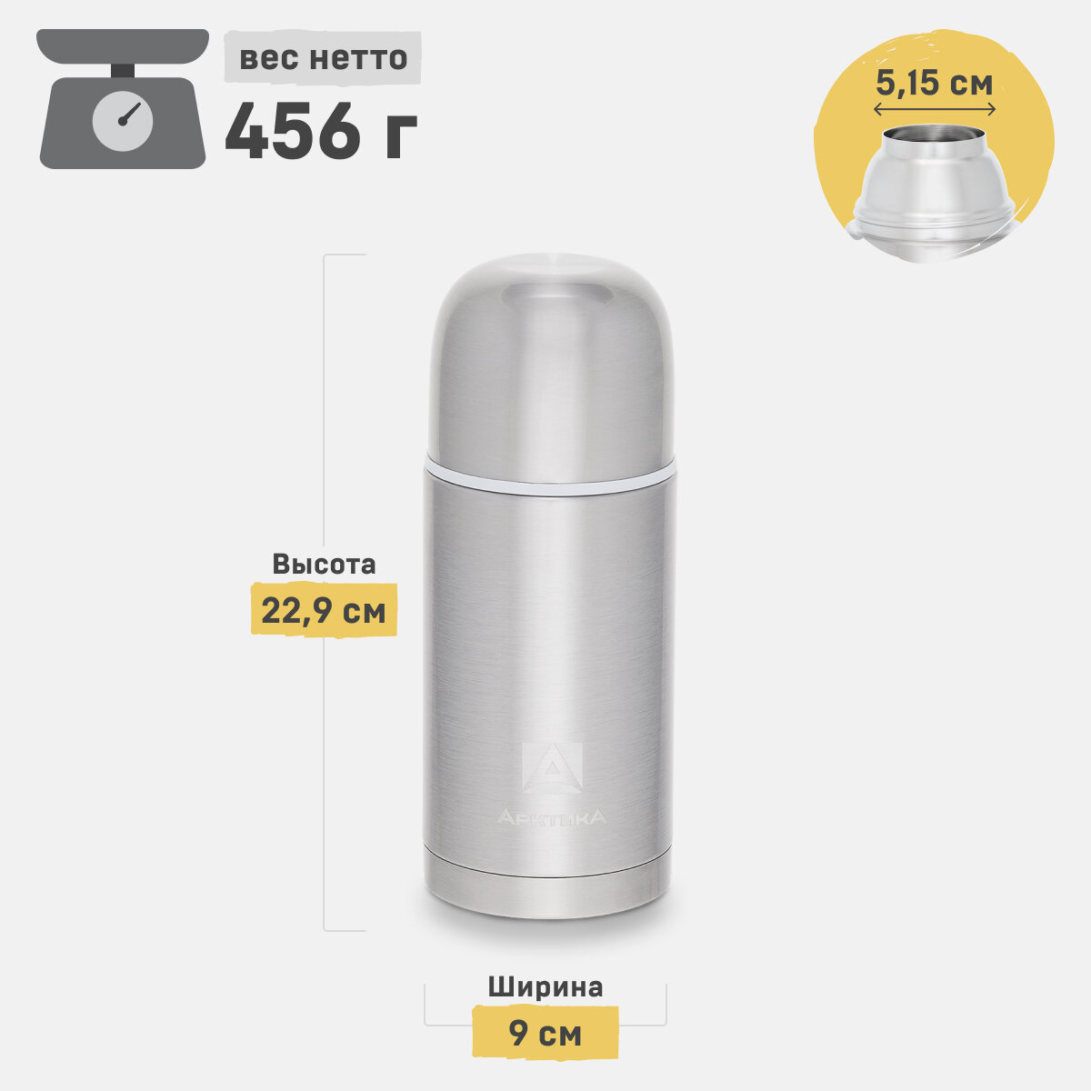 Классический термос Арктика 105, 0.5 л, серебристый