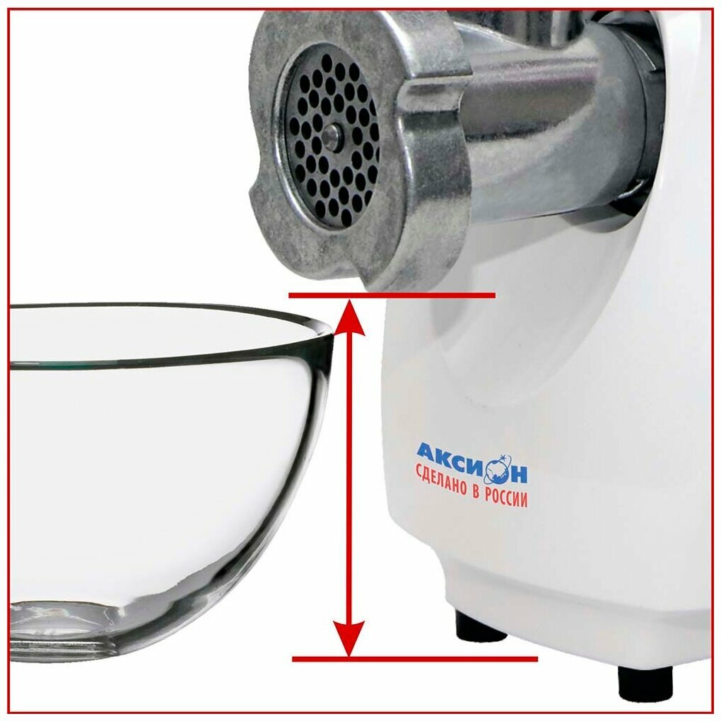 Лучшие цены. Мясорубка аксион М21.10 представлена в обтекаемом белом корпусе из ударопрочного пластика. Устройство действует непрерывно в течение 15-ти минут согласно системе защиты двигателя от перегрузок. При этом производительность прибора составляет 830 г/мин. Конструкция аксион М21.10 дополнена кабелем длиной 1.2 м, специальным отсеком для его хранения и нескользящими прорезиненными ножками. Оборудование весит 4.4 кг и не вызывает сложностей в эксплуатации и уходе. Магазины в вашем городе.