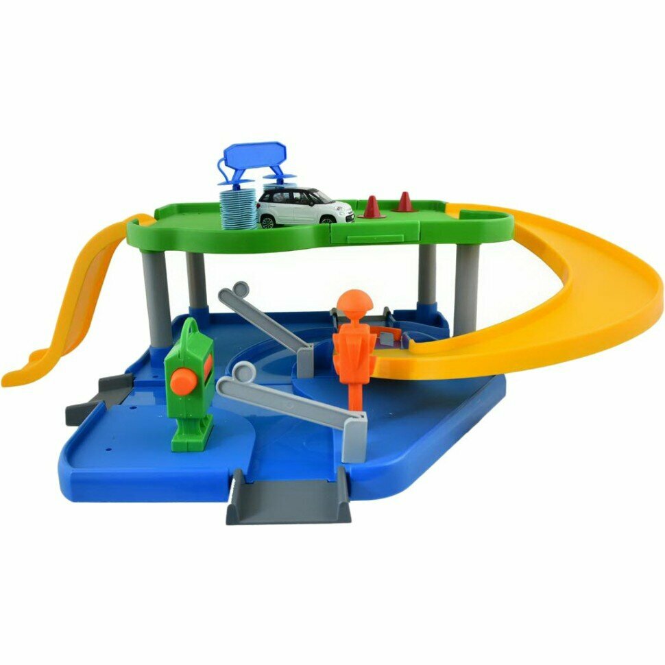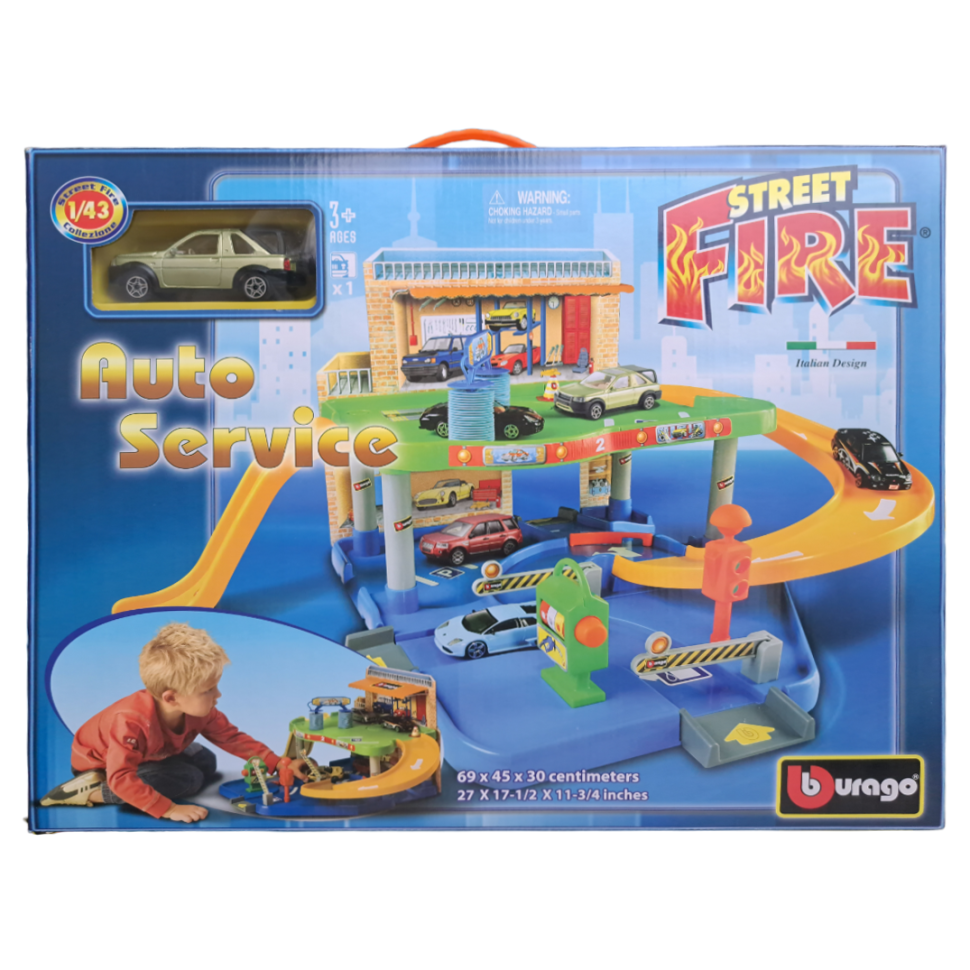 Автотрек / железная дорога Гараж-парковка Auto Service с 1 машинкой 1:43 Bburago детская игрушечная серия Street Fire 18-30039