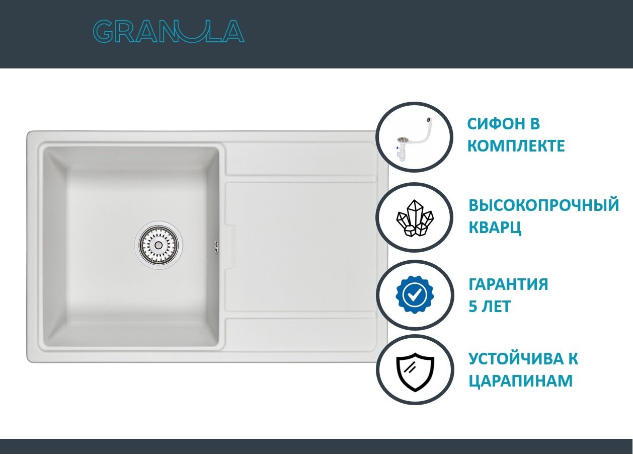 Мойка для кухни GRANULA Quarz 7804 (GR-7804 арктик) арктик