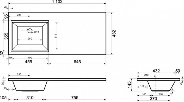 Умывальник Компл.1 - Раковина-столешница Даллас 110 левая (235497)