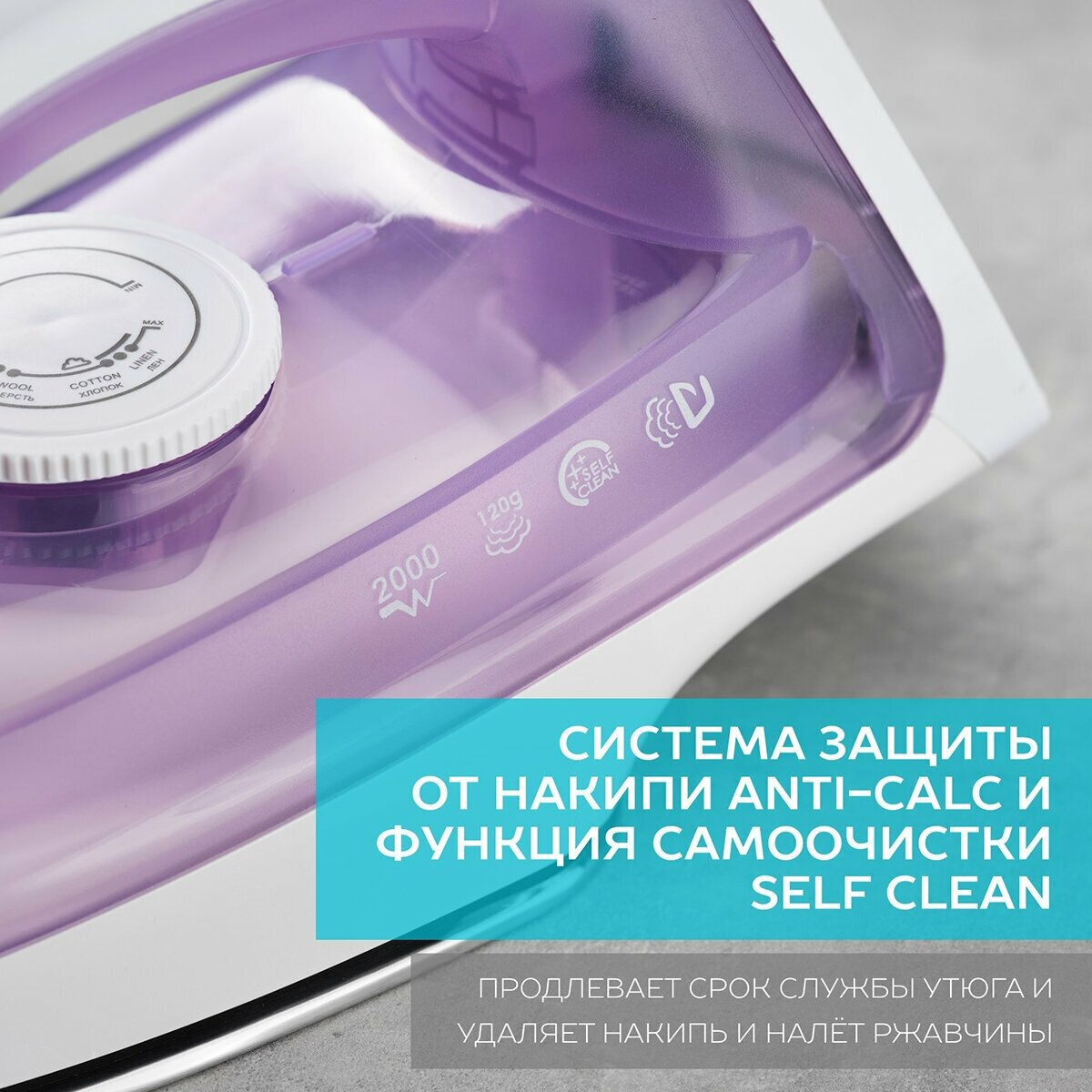 Утюг Scarlett 2000 Вт, антипригарное покрытие, антинакипь, самоочистка, лиловый (SC-SI30S06)