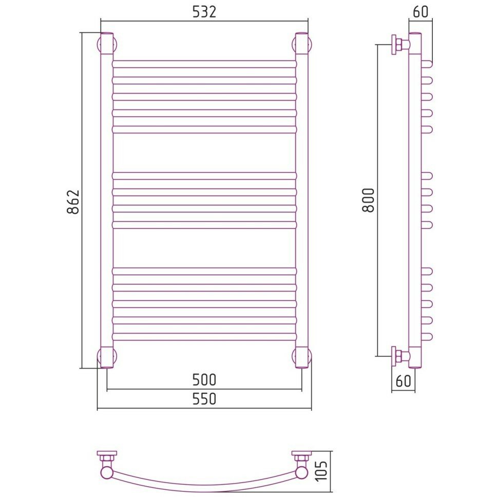 Полотенцесушитель водяной Сунержа Богема+ выгнутая 800х500 Без покрытия