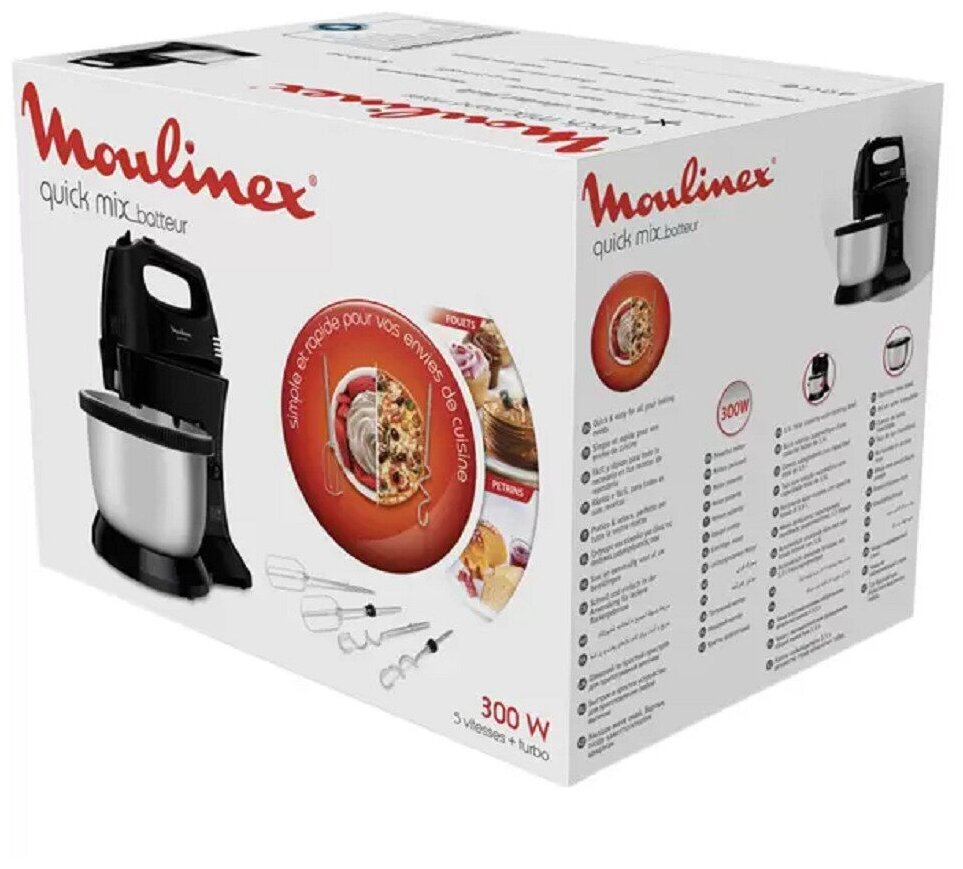 Лучшие цены. Quickmix – универсальный электрический миксер с чашей на подставке поможет приготовить любую выпечку быстро и легко благодаря мотору мощностью 300 Вт, 5 скоростям работы и режиму Turbo. Автоматически вращающаяся чаша на подставке освобождает ваши руки во время замешивания теста. Миксер можно использовать отдельно от чаши и держателя. В набор входят два комплекта насадок, выполненных из нержавеющей стали: насадки для теста, смесей для приготовления кексов, взбивания белков и крема и крюки для замешивания. Магазины в вашем городе.