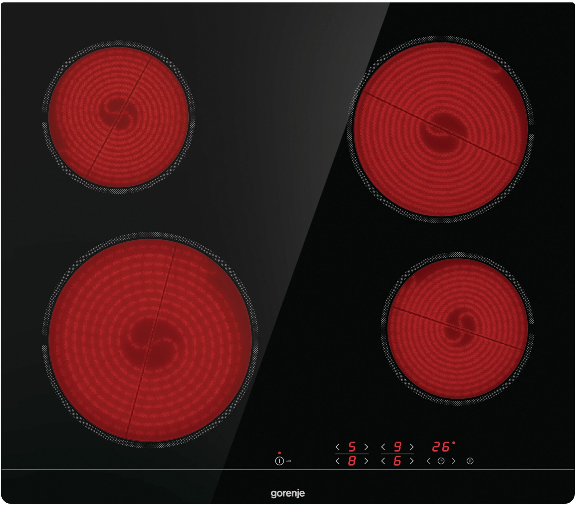 Варочная панель электрическая Gorenje ECT641BSC встраиваемая, 60 см, 6500 Вт, стеклокерамическая, функция паузы, остаточное тепло, автовыключение, таймер, черный