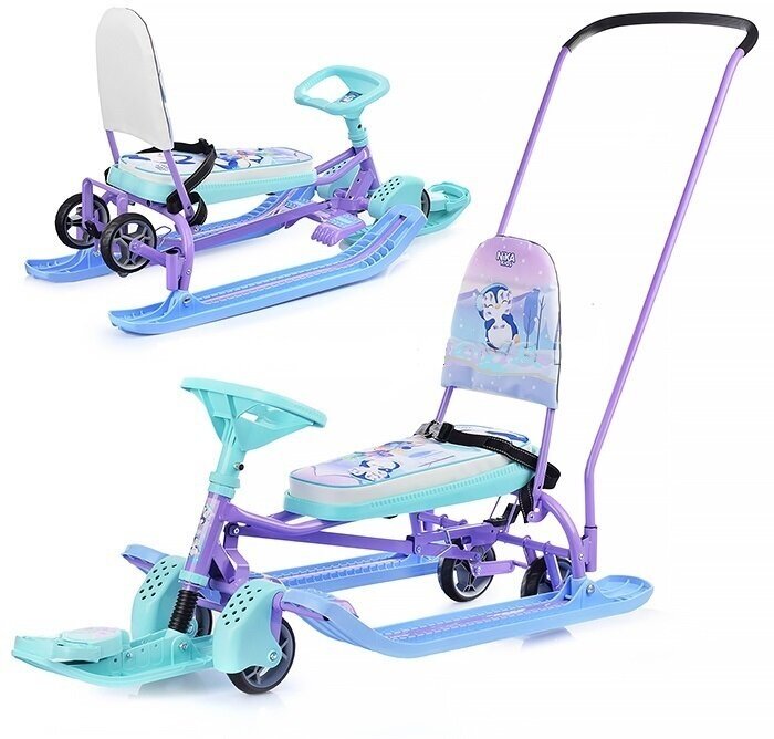 Снегокат для детей с выдвижными колёсами, родительской ручкой, Nika, ТС6-М/К